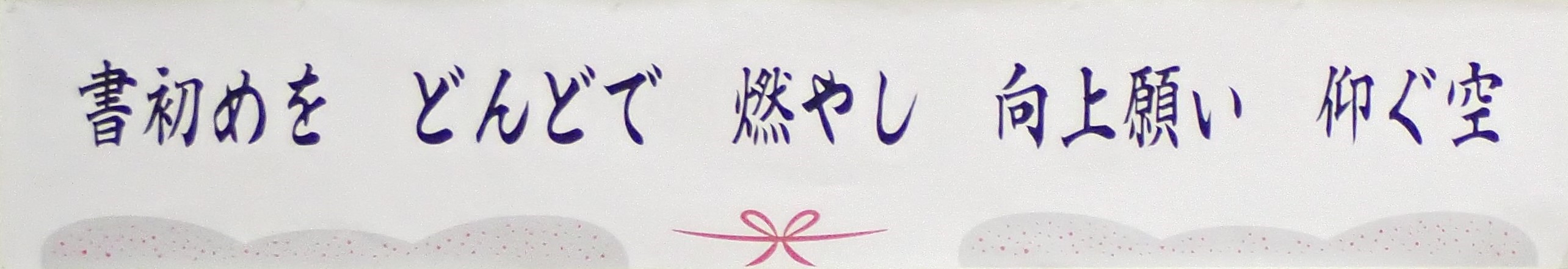 今年の課題字は、巳年の初春にちなんで、「書初めを どんどで燃やし 向上願い 仰ぐ空」で、その中の漢字を学年別に、2年生は「書」、3年生は「向」、4年生は「初」、5年生は「願」、6年生は「燃」、中学生は「仰」を書きました。