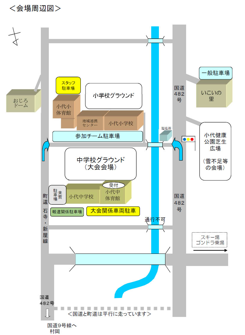 出場チームの方は、「小代小学校」駐車場に駐車下さい。<スタッフに駐車券をご提示下さい。>