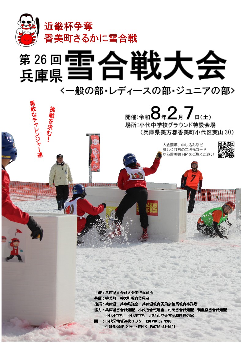 令和8年2月7日(土)に開催を予定しております、第26回兵庫県雪合戦大会の対戦表が決定しました。