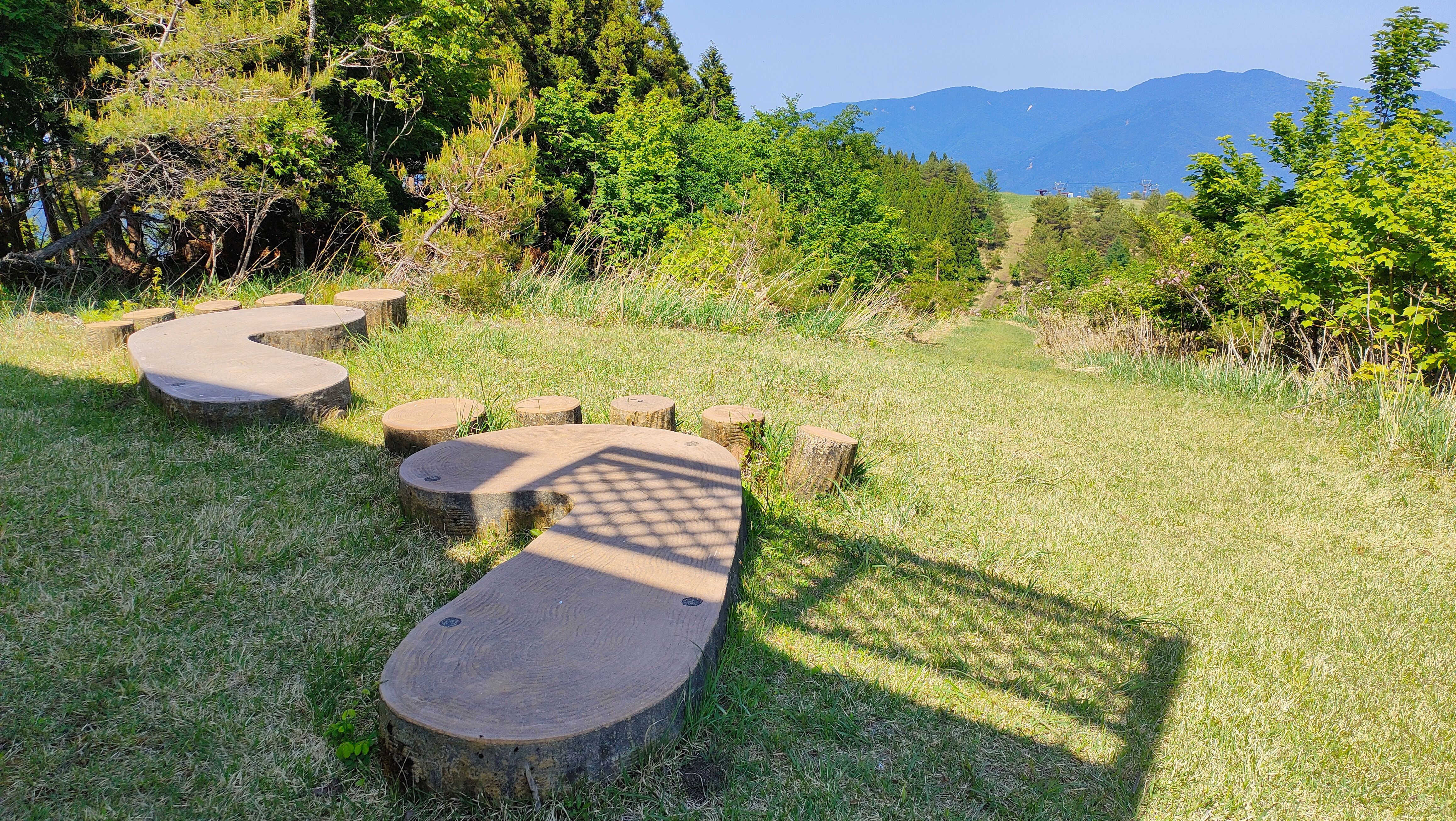 山頂付近にある展望台周辺からは、但馬の名だたる山々の展望が楽しめ、高坪山避難小屋から山頂にかけては、杉やカラマツなどの樹林帯に包まれながら歩くことができます。