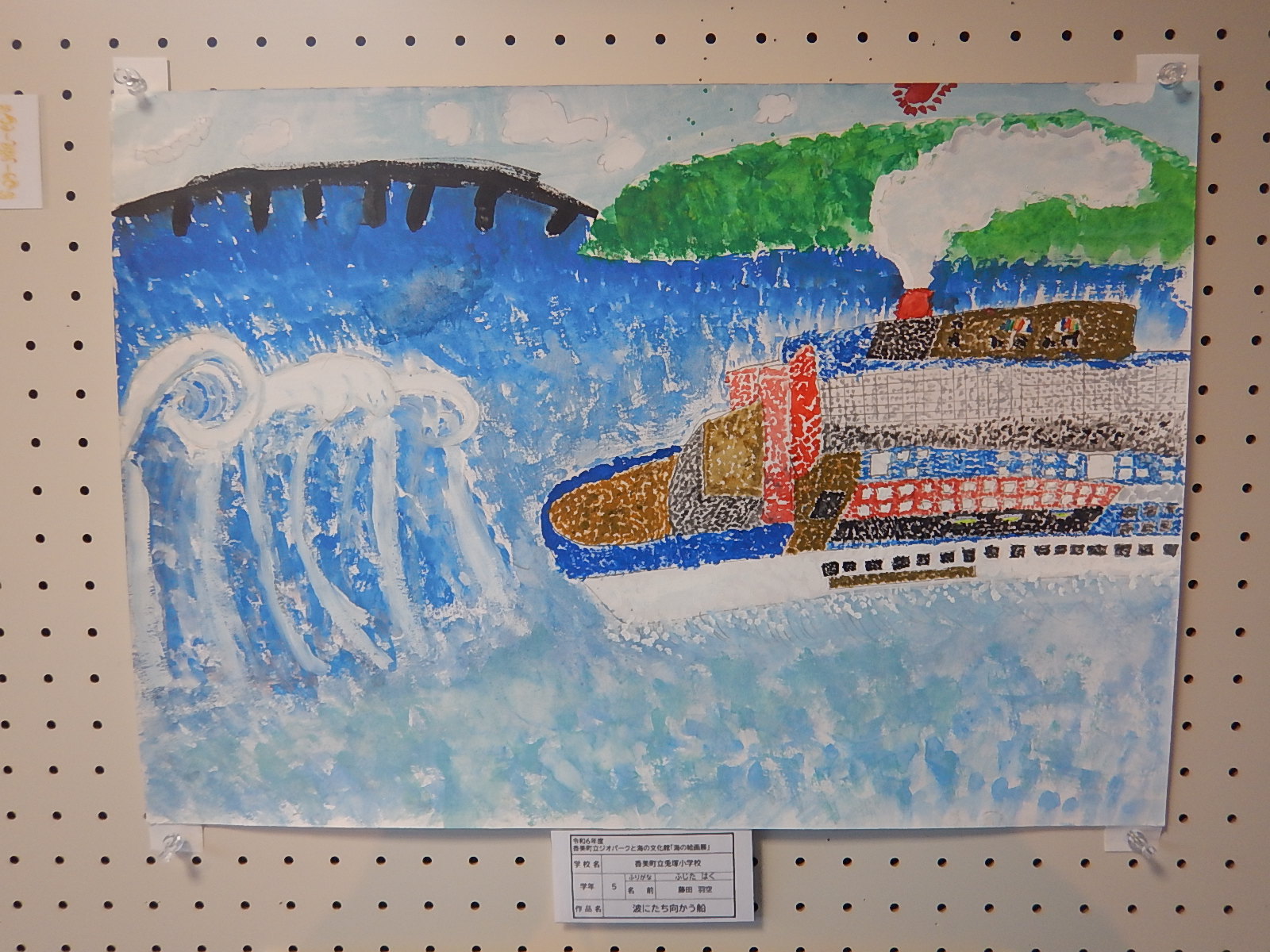 ジオパークと海の文化館では、小中学生による“海”をテーマとした「海の絵画展」を開催しています。