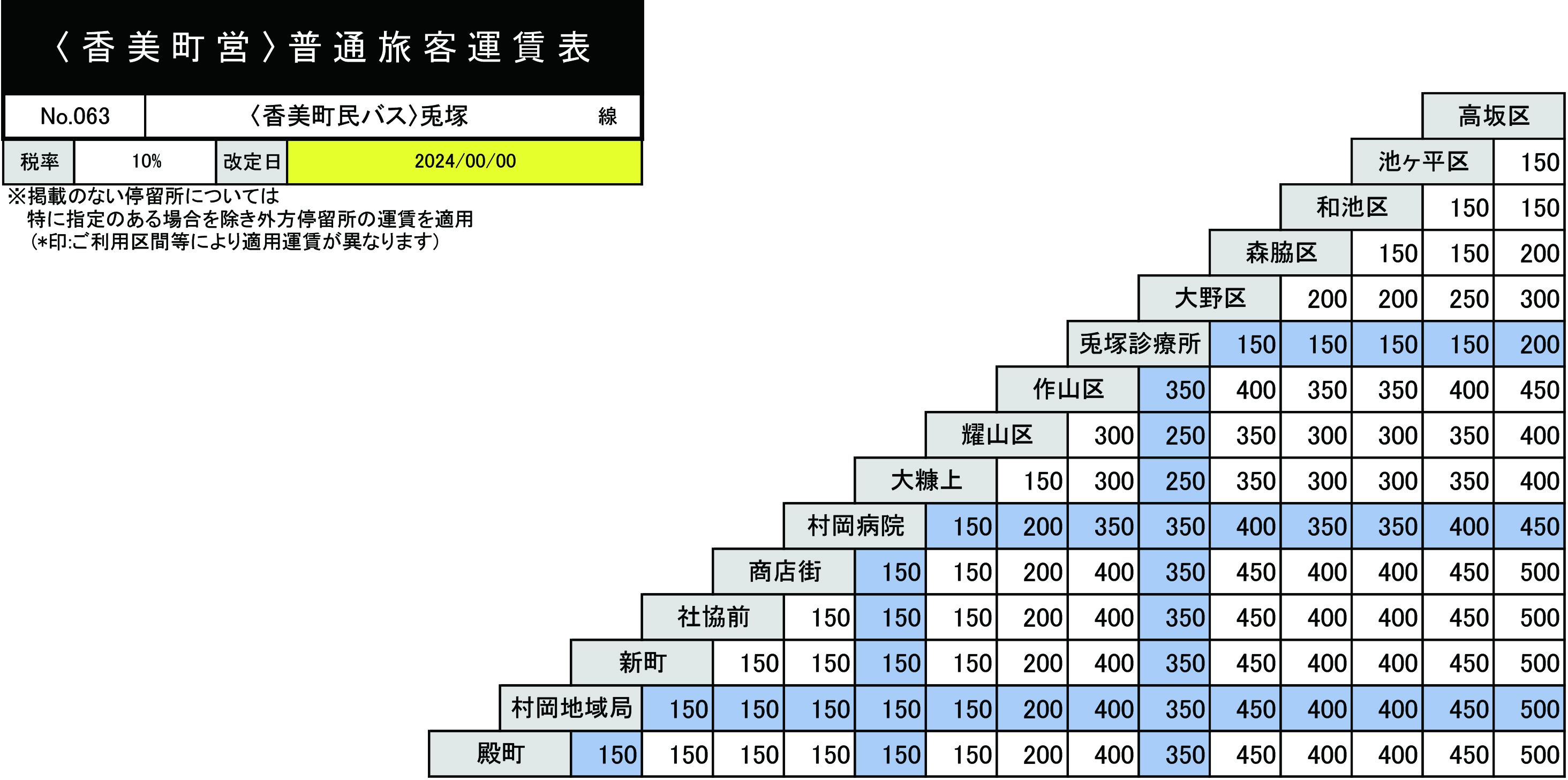 香美町民バス兎塚線につきまして、ルートを下表のとおり変更する予定です。