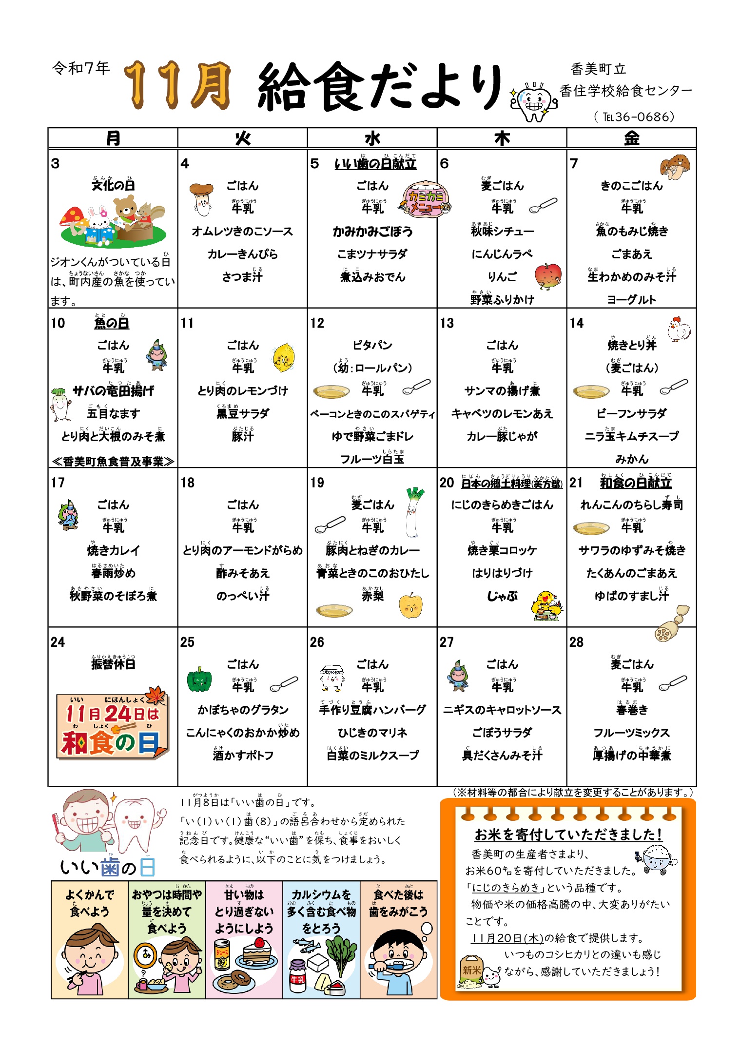 - 香住学校給食センター給食だより11月号( PDF:620KB )