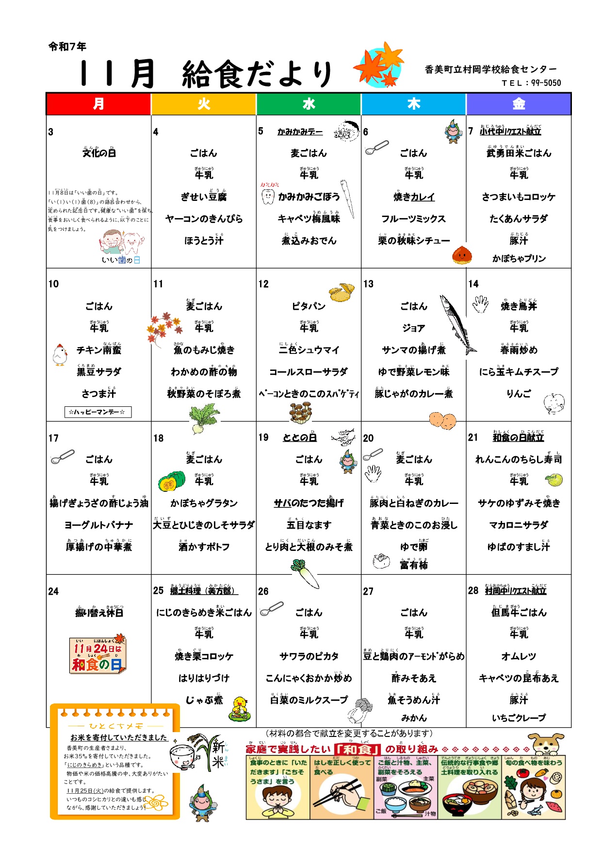 - 村岡学校給食センター給食だより11月号( PDF:480KB )