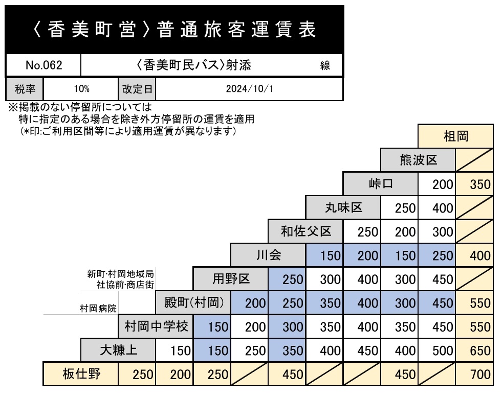 令和6年10月から柤岡線、板仕野線を香美町民バス射添線と一体的に運行していますが、「目的地までの乗車時間が長い」「利用したいが、希望する時間帯に○○地区は走っていないので利用できない』といった声をお聞きしていました。