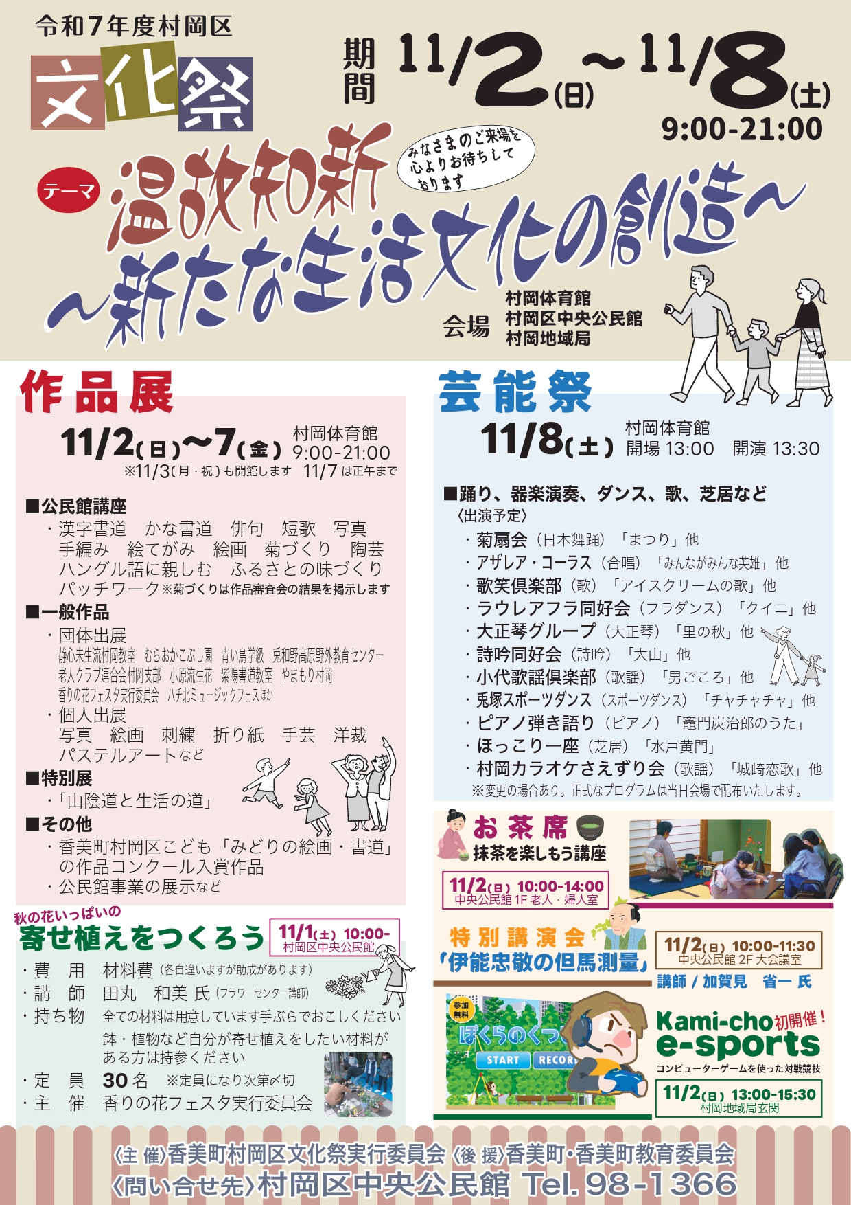 村岡区文化祭(作品展・芸能祭)開催のお知らせ