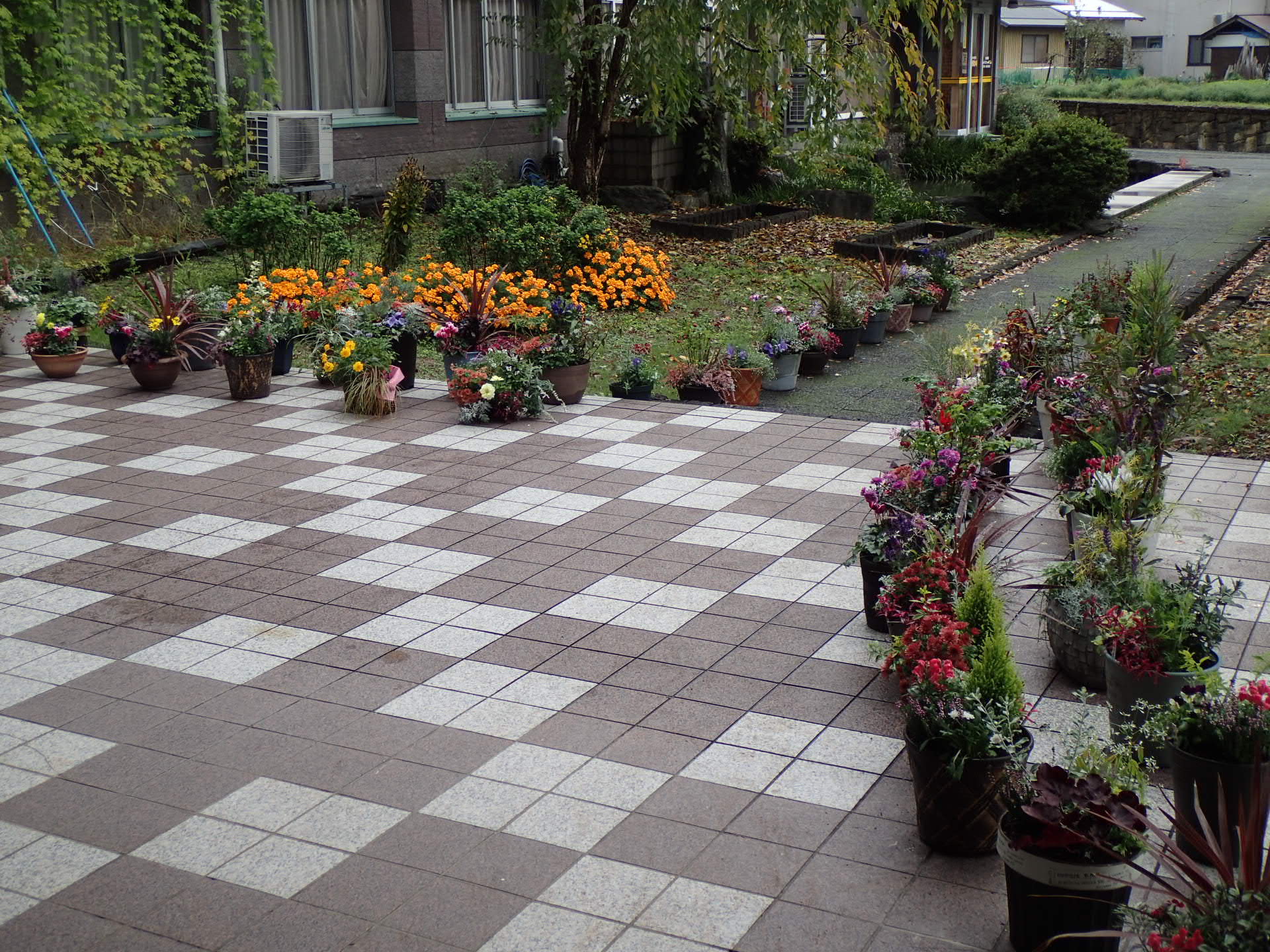 玄関を見事に飾った、菊や寄せ植えの数々は秋本番を感じさせてくれます。