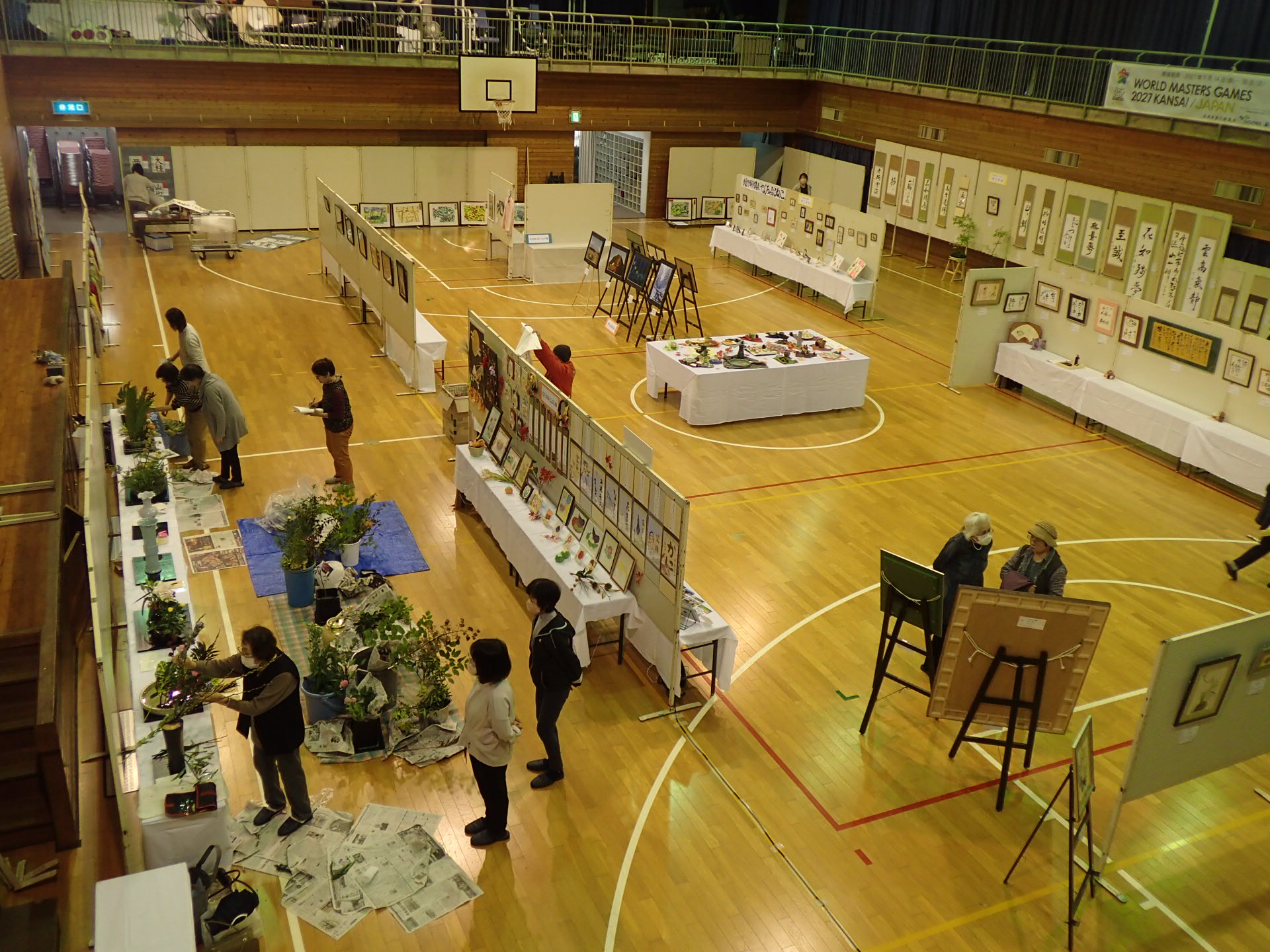 会場内では、書道、俳句、短歌、写真、手編み、絵てがみ、絵画、陶芸、パッチワーク、生け花など多くの区民の皆さんの力作を展示しています。また、区内の幼稚園、小学生、中学生から応募したみどりの絵画や書道の入賞作品、様々なさまざまな団体やサークル、公民館講座など元気に活動されている様子も紹介しています。
