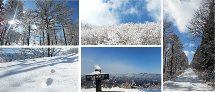 [スノーシューハイキングの見どころ等] ・瀞川山頂の迫力ある眺望 ・山頂付近にある1kmにおよぶ真っすぐな道 ・この時期ならではのフカフカの新雪 ・運が良ければ動物の足跡が見れるかも