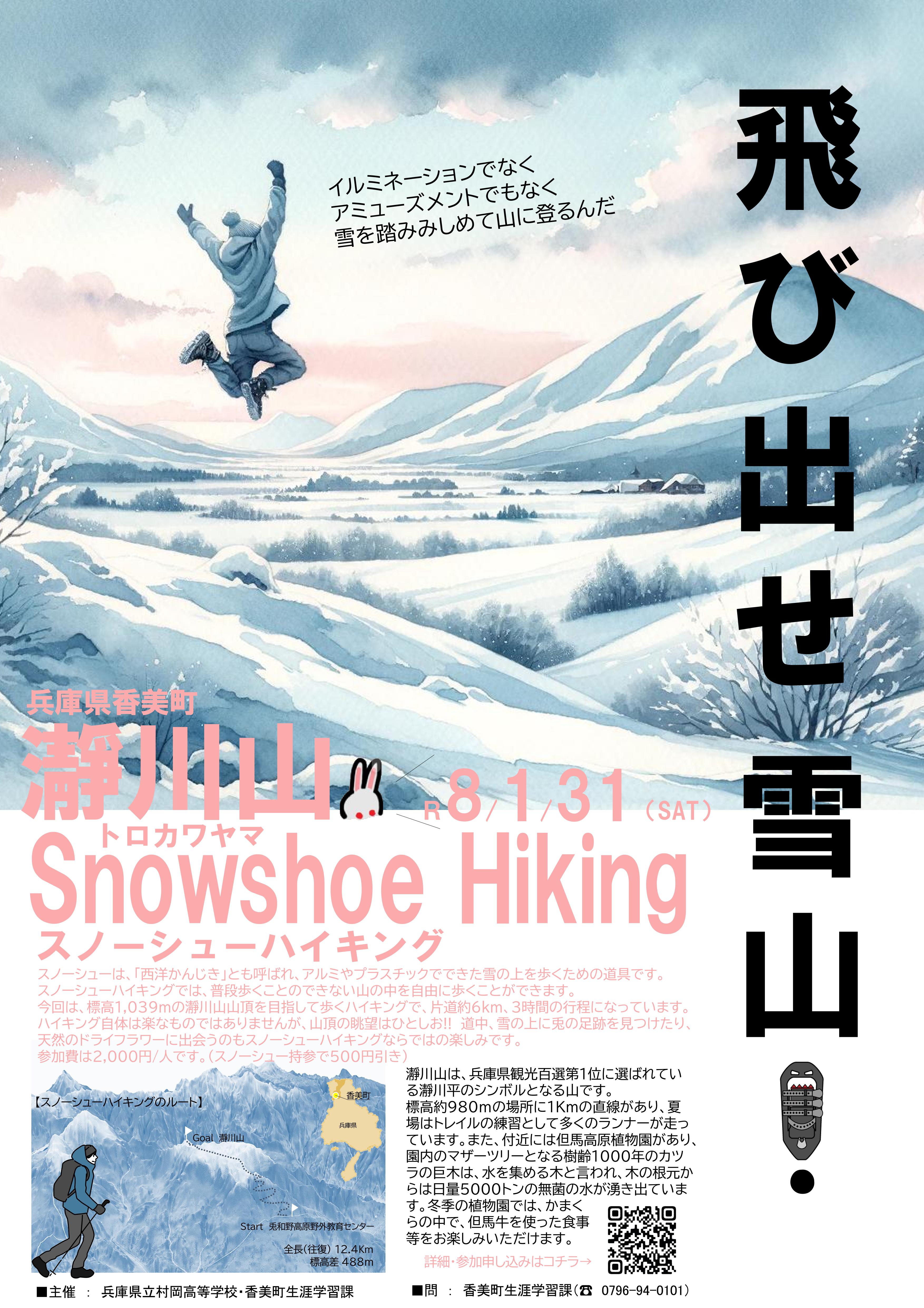 ハイキング自体は楽なもではございませんが、山頂からの眺望など冬山ならでは楽しみがたくさんございますので、ぜひ、ご参加いただき、香美町の冬の自然を満喫していただますよう、よろしくお願いいたします。