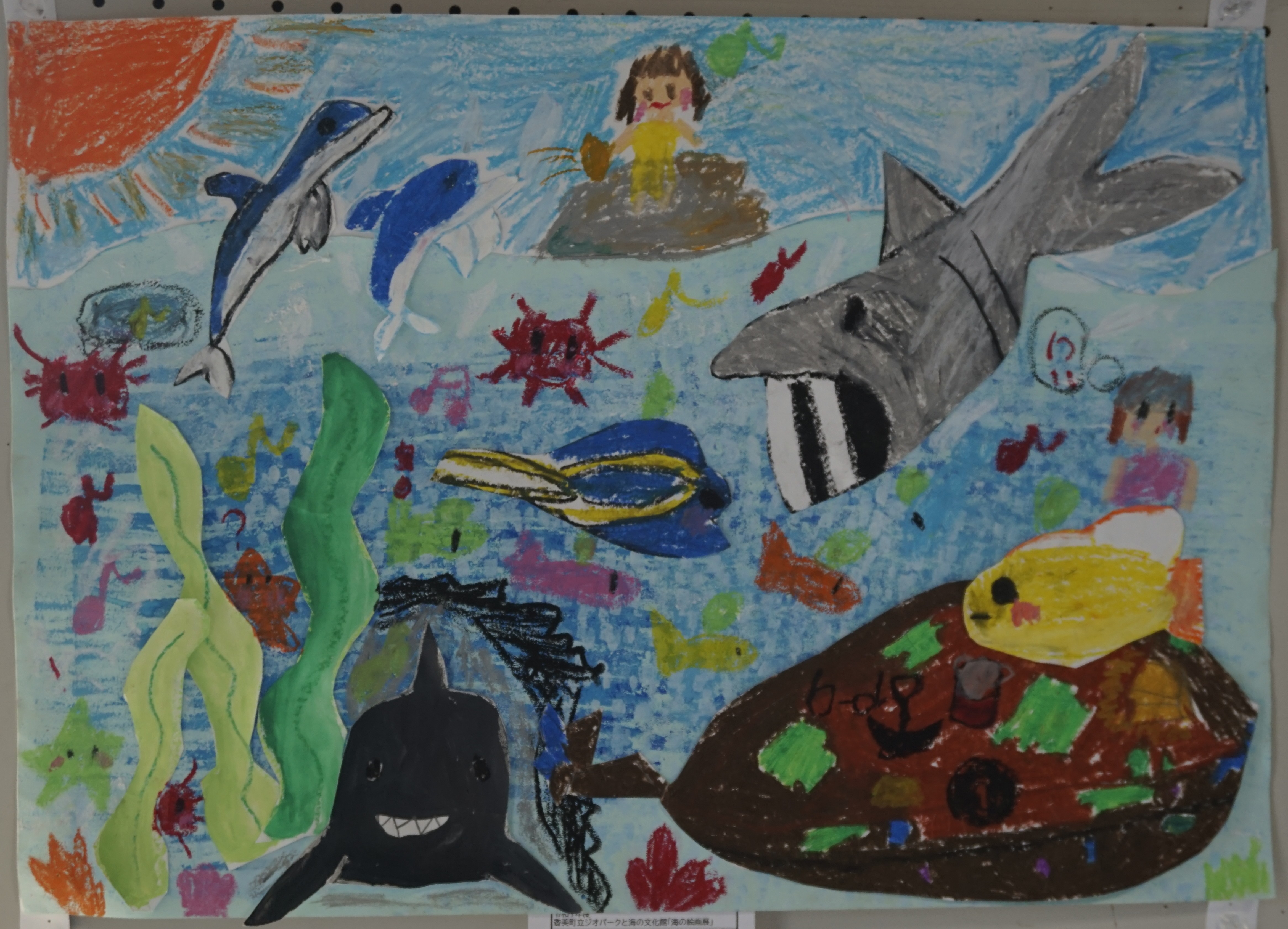 ジオパークと海の文化館では、小中学生による“海”をテーマとした「海の絵画展」を開催しています。